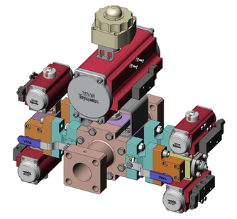 The technology required to ensure the drill tool of a floating platform remains in contact with the sea bed at all times is complicated but at the heart of all such systems is a series of valves which allow the high pressure air to breath in and out of the air receivers necessary to hold the drill bit stable. This design not only reduced the footprint of the skid but it also saved valuable kilo's of weight.